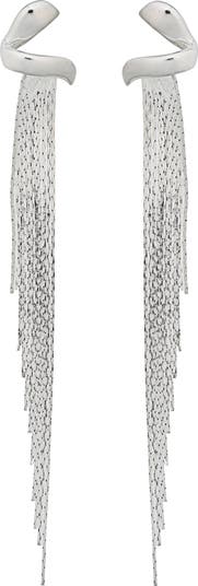Show off striking shine with these sculptural drop earrings composed of artfully twisted studs above cascading snake-chain fringe.