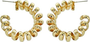 Spiral hoops plated in 14-karat gold will bring a nostalgic twist to your everyday ensembles.