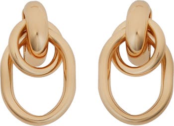 An oval-link silhouette brings contemporary shine to these chunky half-hoop earrings plated in gleaming 14-karat gold.