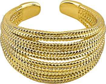 Show off a stacked look with this textured, adjustable multiband ring plated in warm 14-karat gold for stunning shine.
