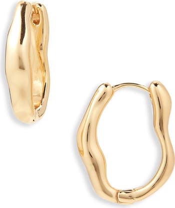 A wavy silhouette offers a contemporary update to some classic endless hoops plated in warm goldtone.