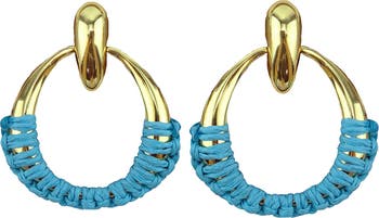 Vibrant thread wraps around the round silhouette of these door-knocker earrings plated in gleaming 14-karat gold.