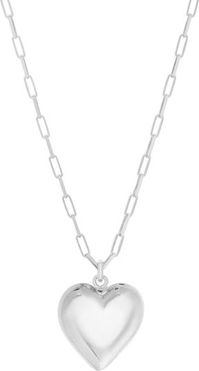 An elegant paper-clip chain necklace features a polished heart pendant for added romantic charm.