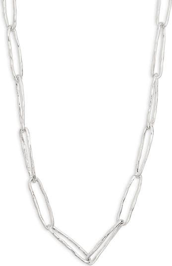 Slender paper-clip links make a modern statement against this polished necklace finished in high shine.