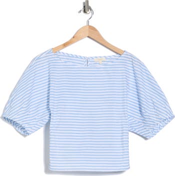 Designed with a classic boat neckline, this cotton‑blend top features sculptural barrel sleeves and horizontal stripes for modern appeal.