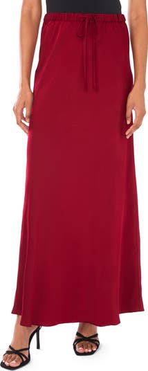 Elevate your workday staples or weekend looks with this flowy satin maxi skirt styled with a sporty drawstring at the waist for casual comfort.