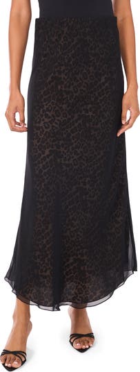 Animal spots subtly pattern a mesh-constructed maxi skirt designed to bring a bit of an edge to your everyday selection.