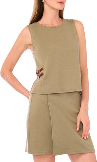 A duo of side belts shapes this sleeveless top designed with clean princess seams and a boxy fit.