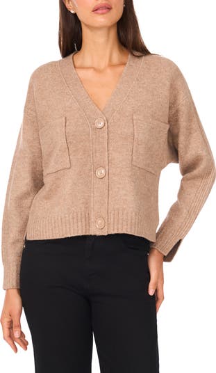 Dropped shoulders enhance the relaxed-fit of this cozy cardigan cut to a slightly cropped length.