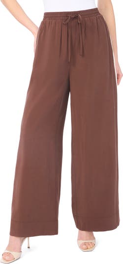 A suede-inspired feel adds touchable texture to these wide-leg pants topped with an easy drawstring waist.