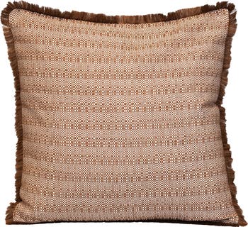 Add a pop of pattern to your cozy corner with this cotton pillow woven in a textured cross weave and finished with fringe trim.