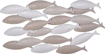 Add an ocean-inspired accent to any blank wall space with this metal decor of a school of fish.