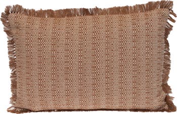 A striped pattern defines this fringed throw pillow that instantly adds a decorative accent to your home.