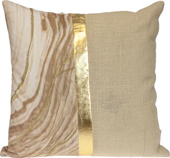 Add character and comfort to any corner of your home with this metallic-print square accent pillow.