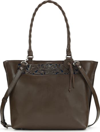 A signature tooled border design brings a rustic touch to this everyday tote crafted from luxurious leather. Twisted rope leather handles and a tasseled accent elevate the look, while an adjustable, detachable strap offers hands‑free versatility.