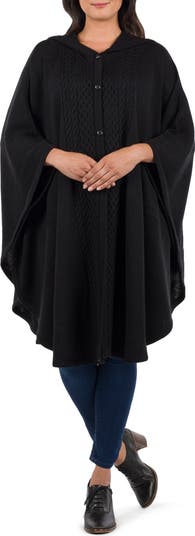Frolic through the woods or curl up on the couch in this cozy sweater-knit cape featuring an attached hood, draped sleeves and textural cable stitches.