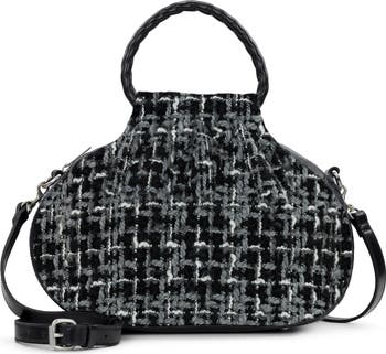 Richly textured tweed gives this posh-boho bucket bag a chic edge, with just enough space for your day-to-night essentials. Complete with an optional crossbody strap, this versatile piece is destined to become a wardrobe favorite.