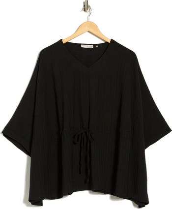 A drawstring waist softly shapes this flowy, boxy-fit top framed by a V-neckline and short sleeves.
