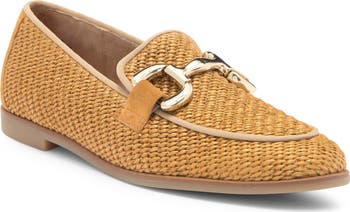 Gleaming bit hardware lends an equestrian aesthetic to this texturally rich woven loafer built for comfort with a cushioned footbed and flexible sole.