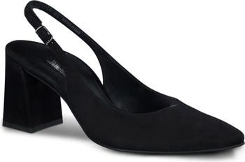 A pointy toe and slingback strap make this block-heel pump the perfect way to elevate your look.