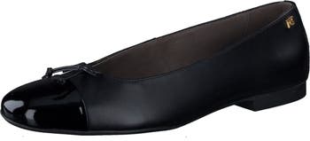 A shiny toe caps off this leather ballet flat featuring built-in arch support for lasting comfort.