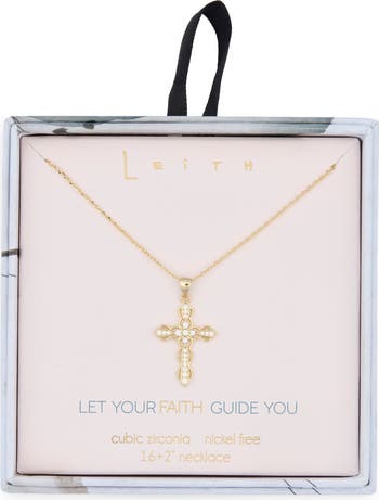 Let faith be your guide with this radiant cross pendant necklace set with dazzling pavé crystals and plated in 14-karat gold.