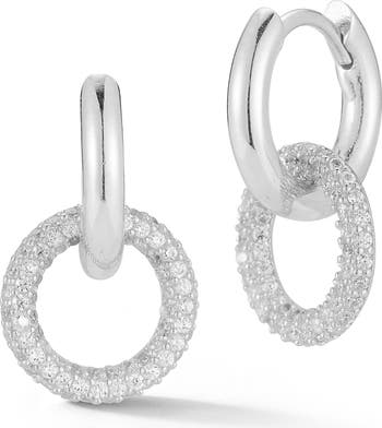 Pavé Cubic Zirconia Circle Drop Huggie Hoop Earrings