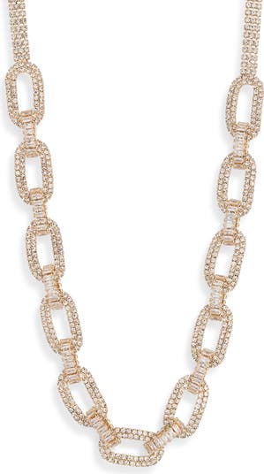 Baguette-cut and round crystals enrich a glamorous chain necklace that brings stunning sparkle to any look.