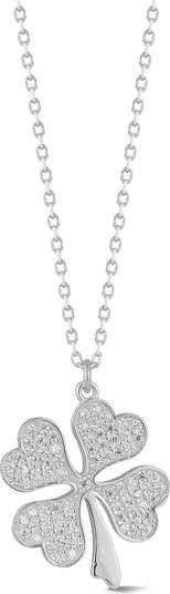 Pavé cubic zirconia sparkle from this four-leaf-clover necklace crafted from sterling silver and plated in polished rhodium or warm 14-karat gold.