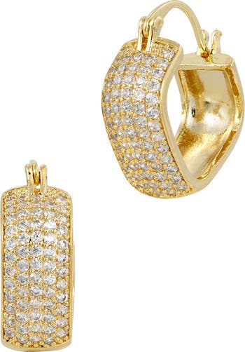 Pavé cubic zirconia bring luxurious shine to squared hoop earrings plated in warm 18-karat gold.