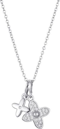 Pavé CZ illuminates this clover-shaped pendant necklace plated in a cool silvertone.