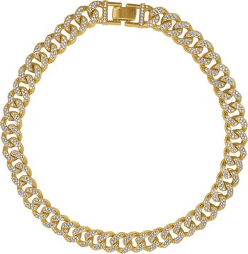 A curb chain collar necklace showcases pavé cubic zirconia stones for elegant sparkle.