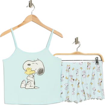 Relax at bedtime in these lettuce-edged Snoopy pajamas that pair a camisole with flowy shorts.