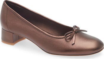 Sweeten your look with this ballet-inspired round-toe pump accented by a dainty bow and lifted by a modest block heel.