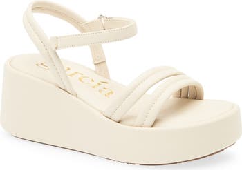 Boost your sunny-day wardrobe with this soft leather ankle-strap sandal lifted by a wrapped platform and integrated wedge heel.