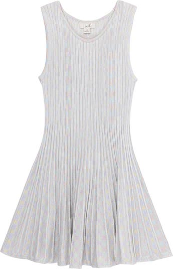 A subtle ombré pattern lends depth to this ribbed sweater-dress that you're kiddo will love to twirl in because of the perfectly flared skirt.