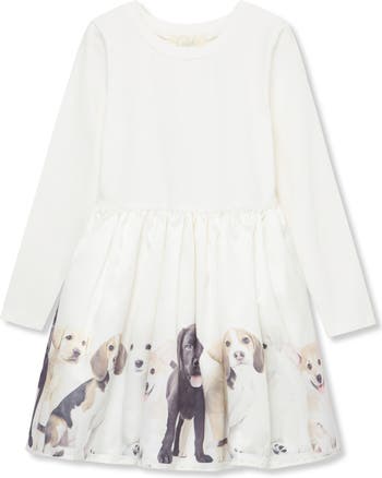 Kids' Puppy Row Long Sleeve Stretch Cotton Dress