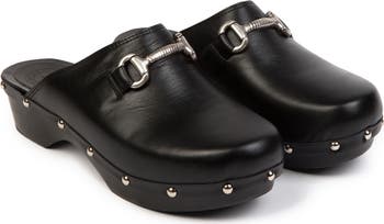 Horsebit hardware and polished midsole studs create visual intrigue on a retro-inspired leather clog that will elevate your trendsetting style.