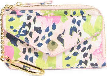 Pebbled printed calfskin leather lends a sleek style to this wallet-on-a-chain while keeping all your cards and cash organized.