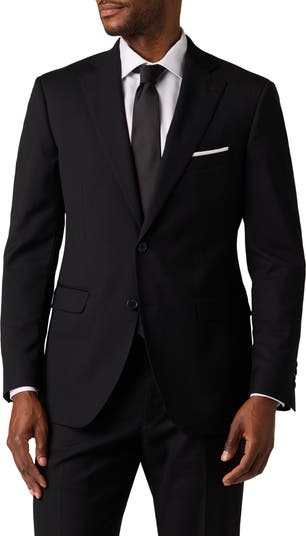 Dress to impress in this polished and practical suit jacket, tailored in a trim fit from wrinkle-resistant performance fabric and outlined with satin piping.