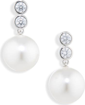 Perle Faux Pearl & Cubic Zirconia Drop Earrings