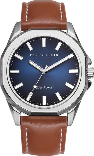 Movement: Three-hand solar movement. Solar movement: powered by a battery that is recharged by exposure to sunlight or artificial light.
