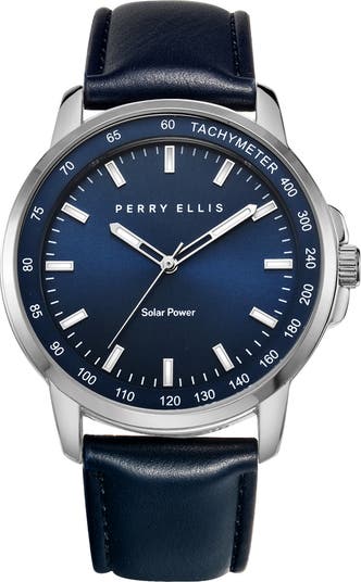 Solar Leather Strap Watch, 41mm