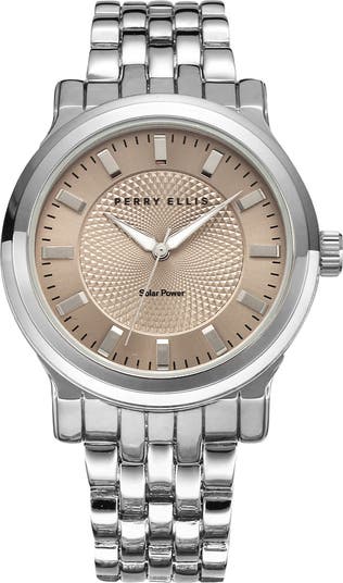 Elegance and innovation come together to drive this solar-powered quartz timepiece fitted with a mesh strap.