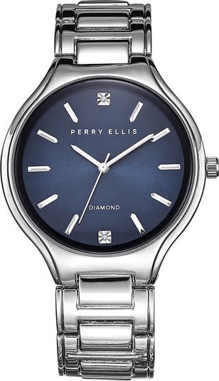 Two diamond markers put a sparkling finish on this quartz-powered bracelet watch designed in an ultrathin profile with a minimalist dial.