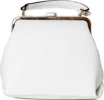 Clean lines and simple details lend minimalist charm to this top-handle bag that's shaped from pebbled Italian leather.