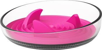 The Pet Life 'Cirlicue' Shark Fin Shaped Modern Slow Feeding Pet Bowl is composed of High-Grade Thick and Durable clear transparent plastic material that is harder to break, easy to wash and dishwasher safe. The bottom interior of the bowl features a removable and insertable unique Rubber-like bendable Silicone and TPR Material with shark-fin inspired shapes and ridges that creates a slow feeding experience that helps ease digestion. The bowl features a modern tilted-edge design for less neck stress and reach-over. The Shark-Finned and peel-off TPR insert make it easier and convenient to clean out grease and grime without any crevices. Reversed with curved rubberized grips for heavy-duty traction.
