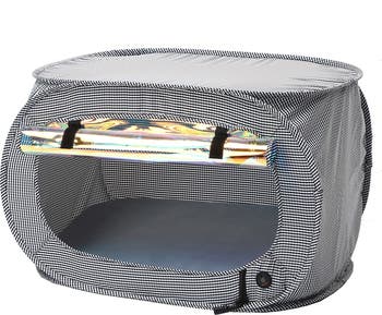 The Pet Life "Enterlude" Electronic Heating and Lightweight Collapsible Pet Tent features an Intelligent electronically powered Built-in heating system that is powered at the push of the button. Once the button is pressed the button turns red and the heating nodes located inside the comfortable gel-foamed cushion begin to activate and a light warming sensation is comfortably applied to the pad. Features Thermal Control Technology an embedded safety feature that automatically turns off once the inner pad reaches a certain Warming Temperature. The Enterlude Pet Tent features a Wired-Folding exterior that is extremely Lightweight and Collapsible as it folds closed and opens in seconds making it ideal for travel.
