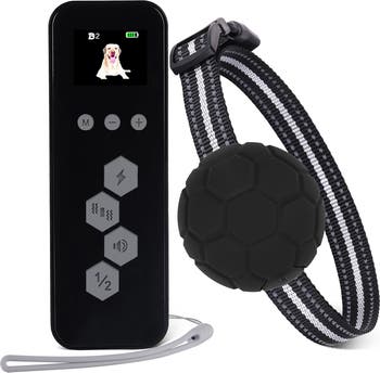 Bark train your fur friend with this dog collar that operates at a range of twelve hundred feet with seven intensity sounds, vibrations, and simulations.