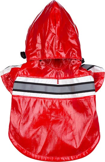The Pet Life Reflecta-Glow Adjustable and Reflective Dog Raincoat is composed of a Waterproof PVC Material outer shell and inner lined with a thin layer of Fleece. This Dog Coat Features a fully Adjustable Removable Hood and adjusts at the tail end. Features a Reflective Strip along the back for added protection and safety. Features a Leash Slit along the Neck Area.